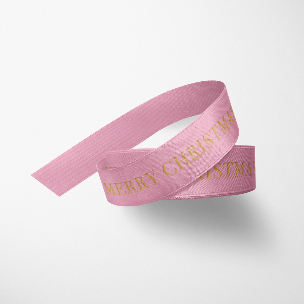 Silkebånd, lyserød, "MERRY CHRISTMAS"